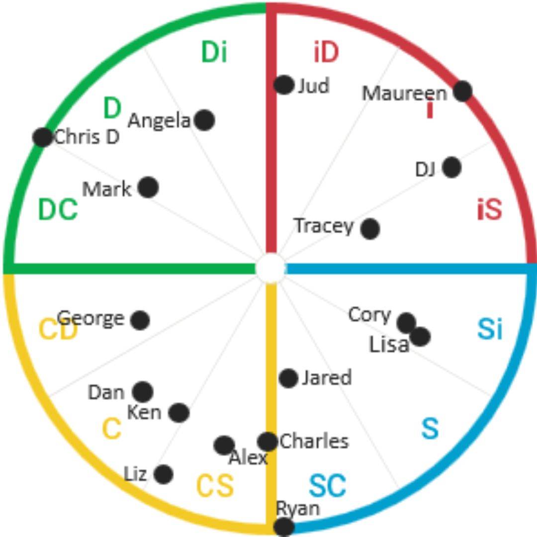 As a leader, when you see an overview of the DiSC map and where everyone’s dot falls, you begin to get a sense of how to delegate, motivate and develop your team members a lot better.